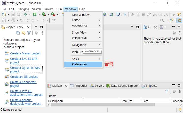νλ‘μ νΈ μ€ν ν μ΄ν΄λ¦½μ€ μλ¨ λ©λ΄νμμ€ [ Window -> Preference ]