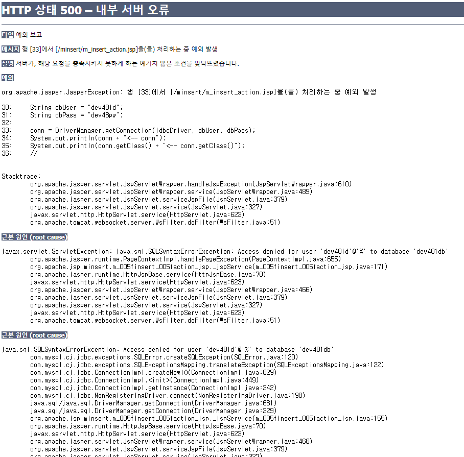 javax.servlet.ServletException: java.sql.SQLSyntaxErrorException: Access denied