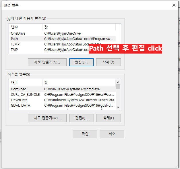 ์ฌ๊ธฐ์์ jsj๋ ๋ณธ์ธ ์ปดํจํฐ ์ค์ ์ ๋ฐ๋ผ ๋ค๋ฅธ ๊ฒฝ๋ก๋ก ๋์ด ์์ ๊ฑฐ๊ธฐ ๋๋ฌธ์