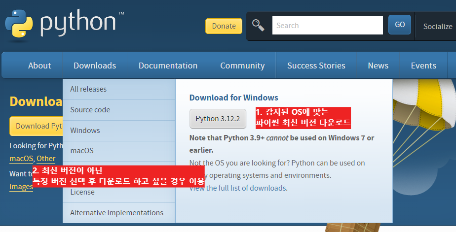 downloads ๋ฉ๋ด์ ์ด์์ฒด์ ์ ๋ง๋ ํ์ด์ฌ ์ต์ ๋ฒ์ ์ ์ถ์ฒํด์ค๋ค.
