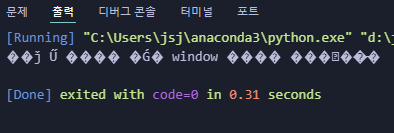 ํ์ฅ ์ค์น ํ ์ถ๋ ฅ์ฐฝ์ ์ถ๋ ฅ๋๋ ํ๊ธ์ด ์ ๋๋ก ๋์ค์ง ์๋ ๋ฌธ์ ๊ฐ ๋ฐ์.